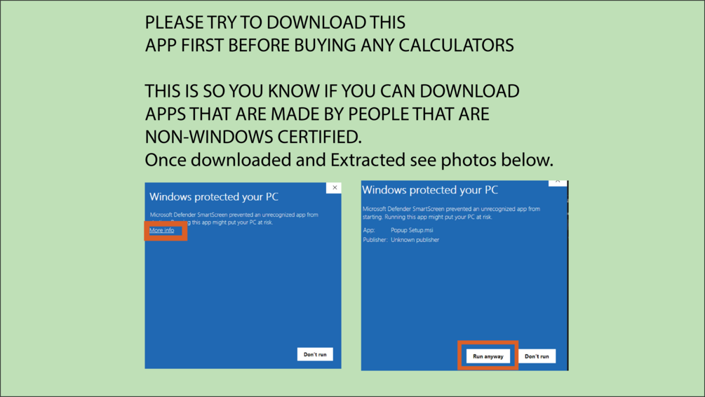 PLEASE TRY TO DOWNLOAD THIS APP FIRST BEFORE BUYING ANY CALCULATORS
